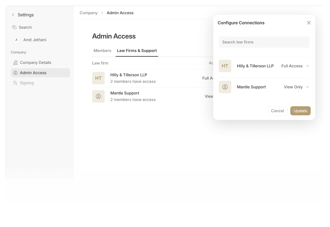 Mantle offers a single source of truth where founders, investors, law firms, and employees have access to the information they need.